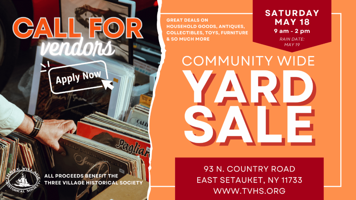 To reserved your place as a vendor go to www.threevillagehistoricalsociety.org/yardsale.